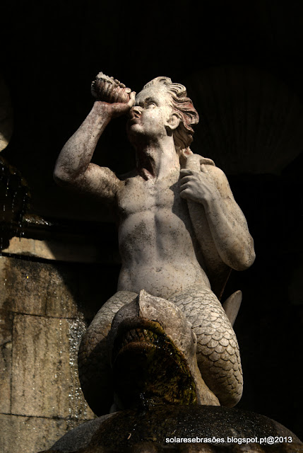 adorná-la uma escultura de um tritão montado num golfinho – figura que