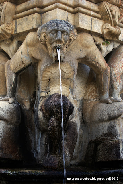 Fonte do Pelicano em granito lavrado. Particularmente interessante nesta fonte é a escultura do pelicano