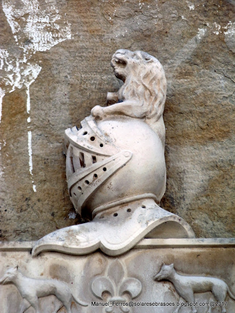 Escudo sob elmo e timbre de Portocarreros.