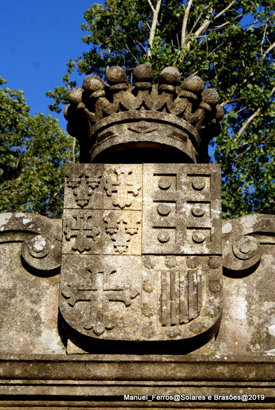 Escudo sob coronel de 9 pérolas aparentes.
