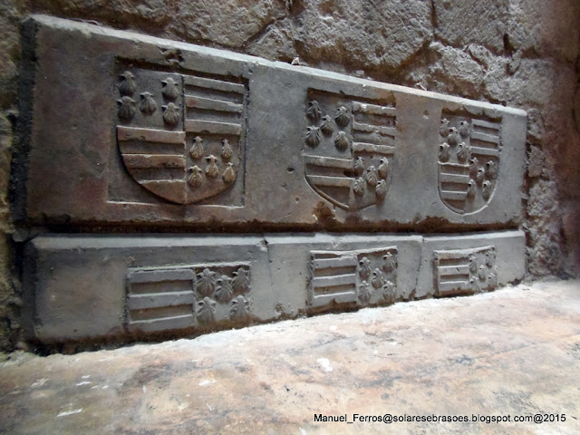 Duas pedras com escudos que fariam parte, muito provavelmente, do túmulo de D. Isabel de Cardona, filha de Raimundo de Cardona, e de sua mulher, Beatriz de Aragao.