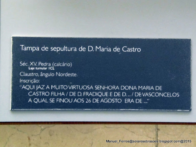 Túmulo de D. Isabel Coutinho, filha de D. Gonçalo Vaz Coutinho e mulher de Gomes Freire.