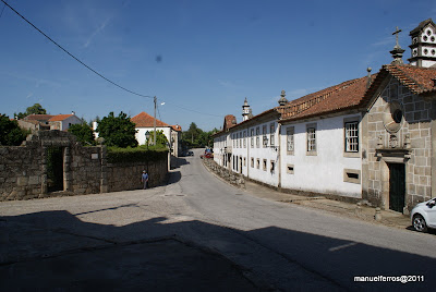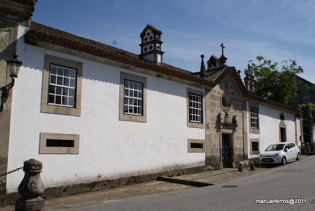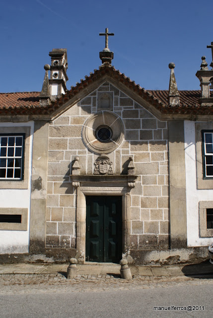 com colunas e grande lareira de cantaria, assente em pilares. Capela com nave e